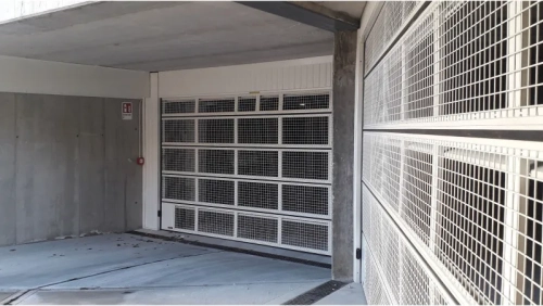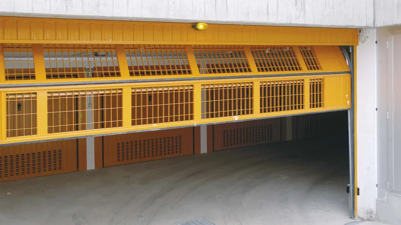 La struttura è realizzata in acciaio zincato, con pannelli composti da un profilo perimetrale e una monolamiera sagomata a doghe verticali. Per esigenze particolari di aerazione, la monolamiera può essere sostituita da una rete elettrosaldata, che permette una circolazione naturale dell’aria, ideale per autorimesse interne o interrate.