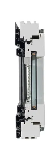 La struttura è composta da anta e telaio in legno lamellare con rivestimento esterno in alluminio, che assicura eleganza interna e resistenza esterna. Il vetro isolante a 1 camera con gas Argon (Ug 1,10 W/m²K), abbinato al vetro supplementare sull’antina, consente una trasmittanza Uw di 1,20 W/m²K e un isolamento acustico fino a 41 dB.