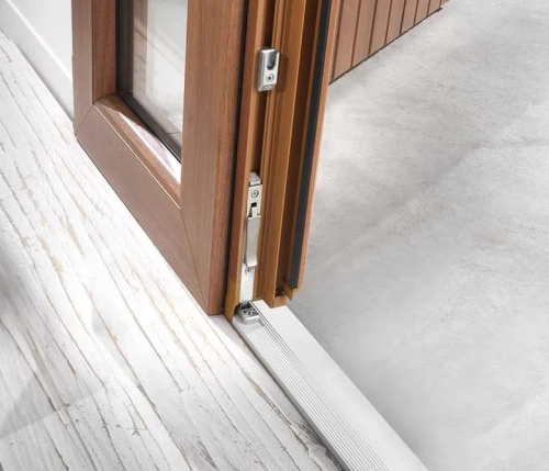 Per un comfort superiore, è possibile aggiungere optional come il parafreddo a ghigliottina o la soglia in alluminio a taglio termico, che facilitano il passaggio tra interno ed esterno migliorando al tempo stesso l’isolamento.