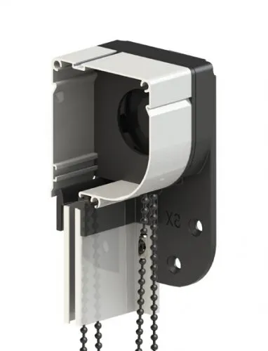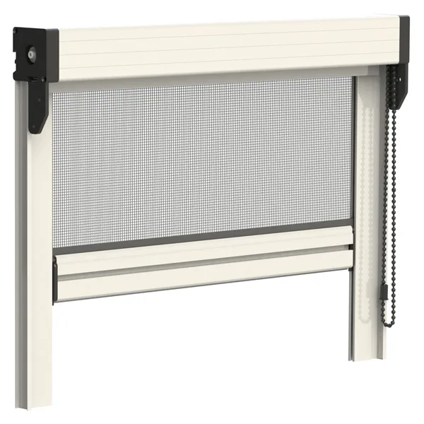 Ha un sistema di funzionamento a catenella avvolgibile che permette alla rete di riavvolgersi all'interno del cassonetto quando viene aperta.